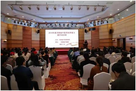 2018年11月16日, 由河南省中医管理局主办、二附院承办的河南省中医药科研能力提升培训班在郑州开班。河南省中医管理局科研教育处副处长张莉、二附院副院长朱光和国内知名专家、各地市代表等200余人参会。会议由二附院科研与科技开发中心主任陈建设主持。