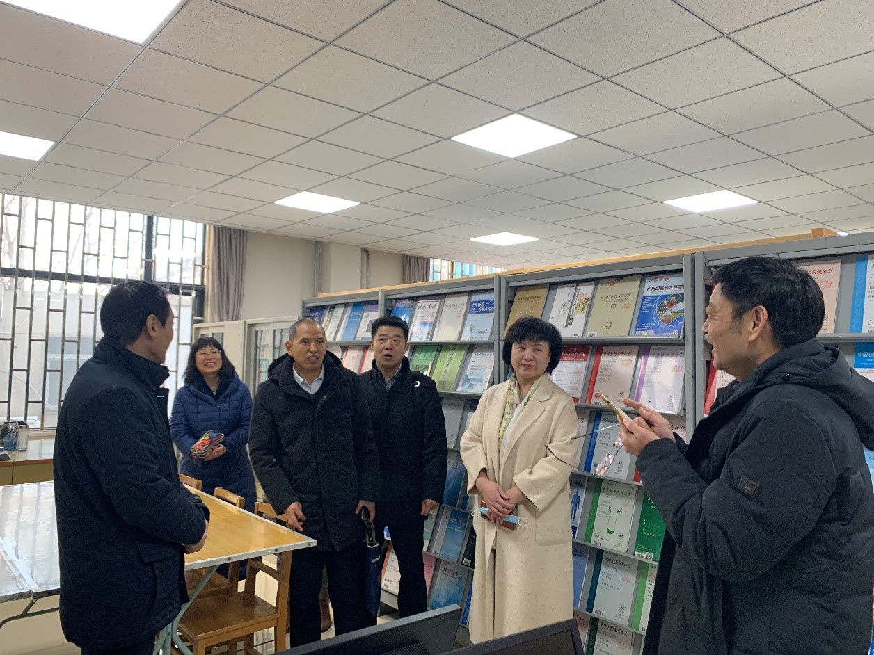 本网讯(文/图 马亚玲)2021年元月5日、6日,校党委委员、副校长田力带领图书馆馆长雷天锋、副馆长孙曙明、崔海英、相关科室负责人和信息化办公室网络服务部主任吴金堂等到第一、二、三、五临床医学院开展调研指导工作,对临床医学院图书馆分馆文献资源共建共享工作等进行实地考察。第一临床医学院副院长孟林,第二临床医学院院长崔应麟、副院长朱光,第三临床医学院副书记袁晓宇、副院长张进一,第五临床医学院副院长张思森陪同调研。