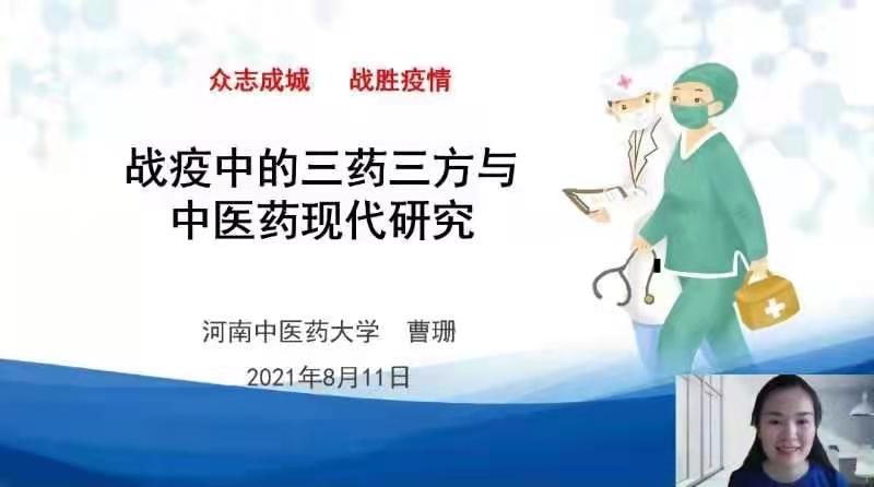 授课中,曹珊首先引用权威报道与视频,以“武汉市江夏方舱医院”为例,回顾了中医药治疗新冠中的显著作用,也向同学们重点介绍了我们学校医疗队及优秀校友在抗击疫情中的突出贡献,号召同学们学习这种不畏险阻的勇气担当、攻坚克难的乐观主义精神;接着,介绍了德尔塔病毒、拉姆达病毒的特殊性,说明了中医疫病概念与辨证论治的优势;随后,她重点介绍了抗疫“三方三药”的方源组成、功效、适应人群、现代研究、临床应用等知识,让同学们深刻体会到三药三方是经方传承与现代研究的完美结合。立足中医药的传承与创新,要不忘本来、吸收外来,才能更好面向未来!此外,曹珊依据《新型冠状病毒肺炎诊疗方案》和方舱医院治疗过程中的实例,展示了中医护理的独特作用,希望学生们要重视中医护理技术、用药护理、饮食护理、情志护理等内容的学习与应用,在抗击疫情及以后的工作中能够充分体现出leyu·乐鱼(中国)体育官方网站培养的护理学专业人才的优势,更好服务于大健康事业的需求。
