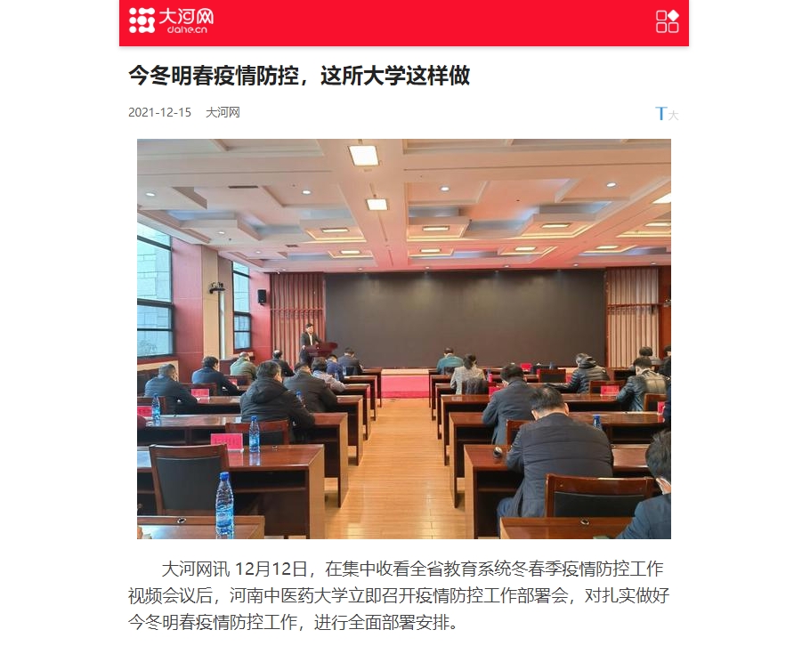 2021年12月15日,大河网对leyu·乐鱼(中国)体育官方网站召开疫情防控工作部署会进行报道。