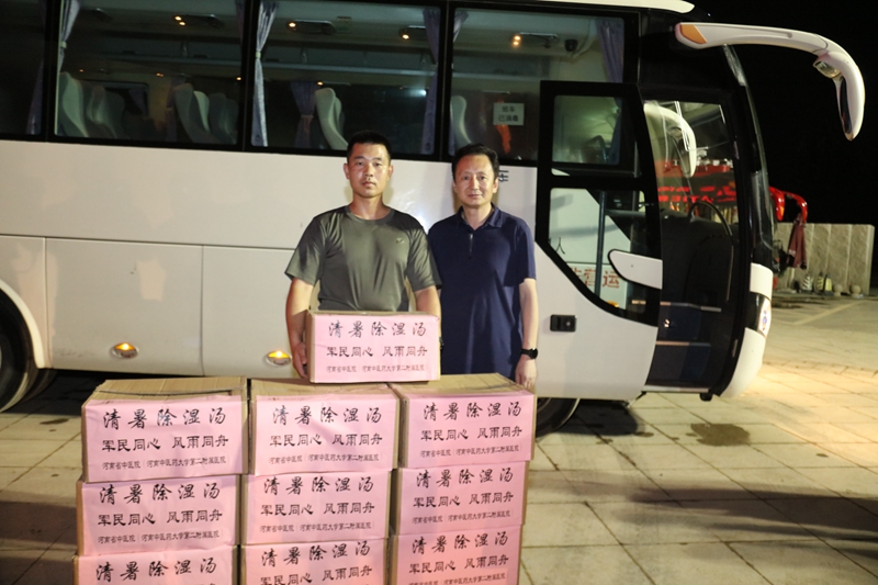 本网讯(文/廉万营 图/李昕)7月24日,二附院副院长赵旭代表医院带着紧急熬制的900袋清暑除湿汤,慰问在郑州阜外华中心血管病医院抗洪救灾的解放军官兵。