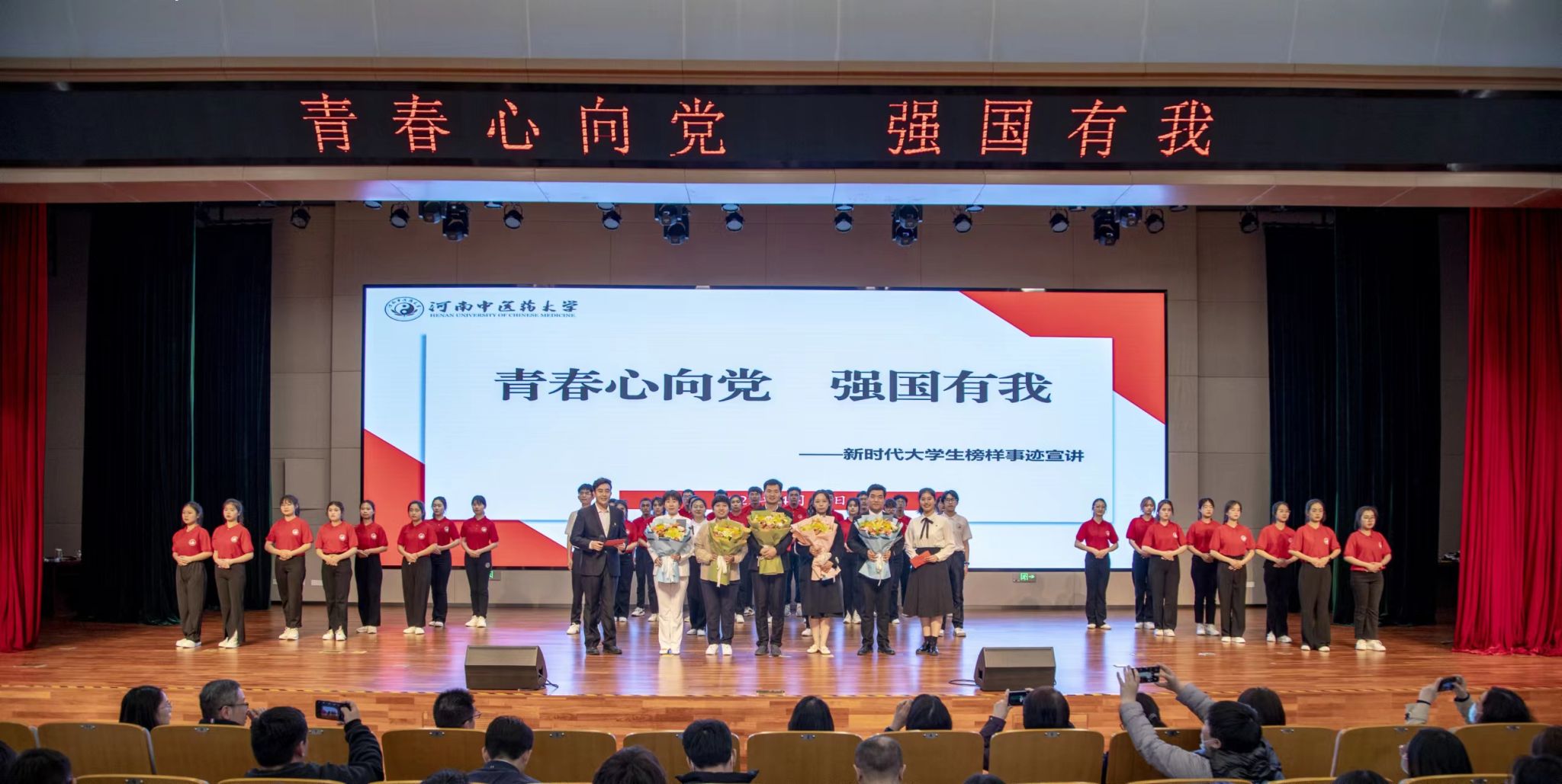 5名宣讲的榜样学生分别是2022年全国大学生年度人物入围奖获得者第一临床医学院(中西医结合学院)余潜,2022年河南省三好学生标兵、河南省三好学生标兵宣讲团成员中医学院(仲景学院)王润兮,2022年河南省百佳国家奖学金获得者儿科医学院代彦林、“出彩河南人”第六届最美大学生候选人第五临床医学院高洋博,航母首位舰载机牵引车女司机第二临床医学院路昱,他们是在学习科研、创新创业、志愿服务、理论宣讲、社会实践、报效祖国等方面表现卓越的河中医学子,通过宣讲自己的榜样事迹,引领青年学生在人生的航程上乘风破浪、奋勇前进!激励青年学生以青春之行告白祖国,牢记使命、砥砺前行!