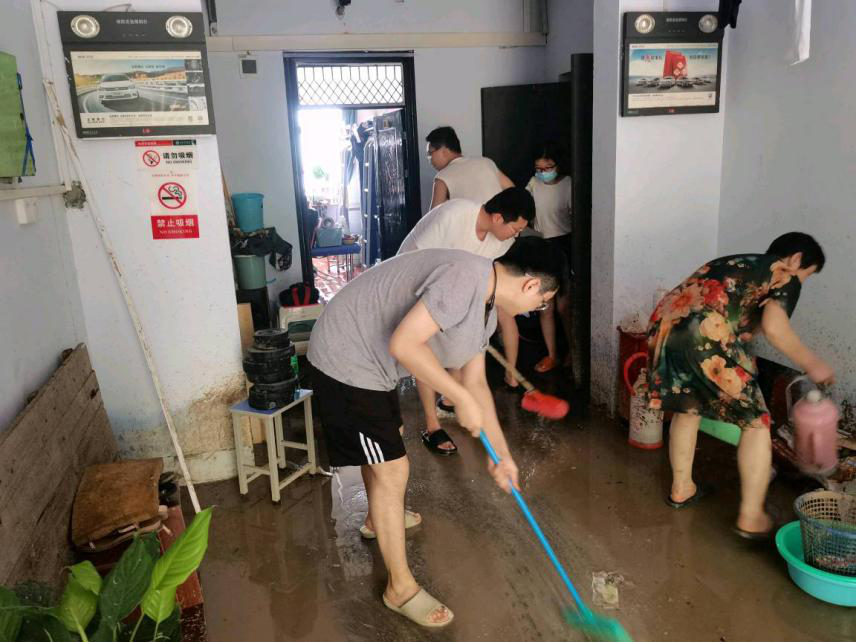 “汛”后自救,党员先行。7月21日,雨势稍缓,但东明路校区内却积水严重、断水断电,同学们生活学习受到影响。面对这一困境,居住在东明路校区的第一临床医学院、针灸推拿学院等研究生同学积极响应学校号召,第一时间成立了“研究生党员先锋队”,踊跃参与到东明校区灾后重建工作中。在学生宿舍,他们主动协助涉水同学搬家,帮助不在宿舍同学转移行李,为身体不适同学买药送药、购买食物,自发清理楼道内积水、淤泥等;在医院抗“汛”救灾一线,研究生党员们一方面投入到医院清淤清障工作中,一方面配合医院进行受灾物资和捐赠物品搬运等工作。