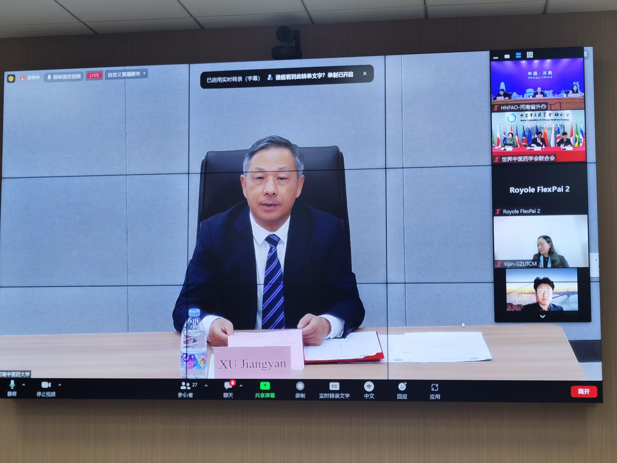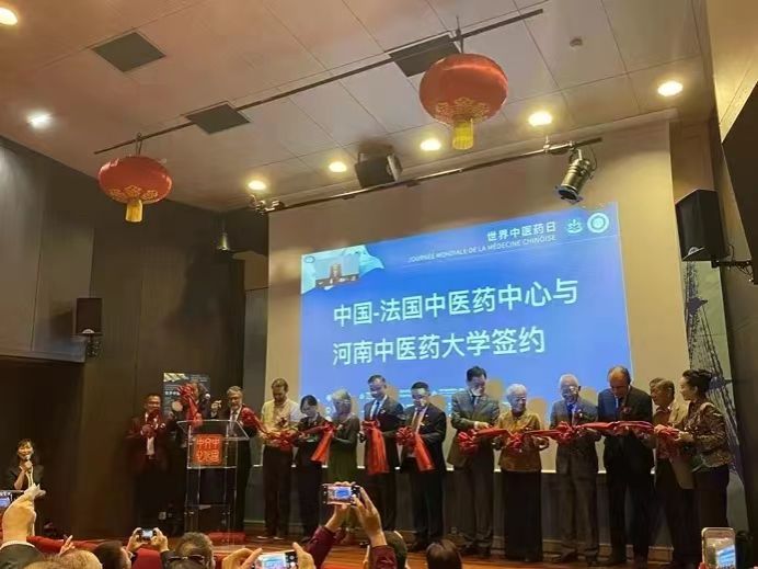 本网讯(文图/高崚) 第四个世界中医药日到来之际,由世界中医药学会联合会、中国-法国中医药中心主办,河南省委外事工作委员会办公室、leyu·乐鱼(中国)体育官方网站、《世界中医药》杂志社等协办的“世界中医药日”活动于2022年10月11日成功举行。中国驻法国使馆公使陈力,世中联秘书⻓桑滨生,法国外交部前部长、联合国前副秘书长布拉齐,河南省委外办副主任李冰,中国-法国中医药中心主任吴宛霖,leyu·乐鱼(中国)体育官方网站党委委员、副校长徐江雁等出席活动。