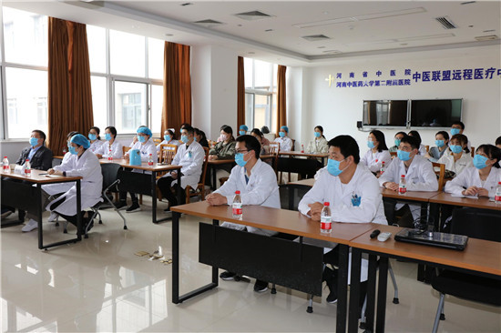 本网讯(文图/廉万营)2020年4月22日,从武汉抗疫一线归来的第三批国家(河南)中医医疗队领队、江夏方舱医院副院长、二附院副院长、中医专家郑福增为二附院医护人员分享新冠肺炎的诊治经验,强调医护人员要在中医经典学习、科研水平、中医思维能力及学科发展水平等方面加以学习。肺病科主任孟泳及其他医护人员参加交流会。