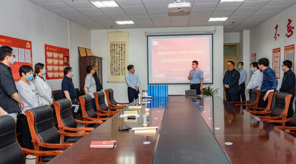 会后,巡回指导组一行先后到学工部、马克思主义学院、药学院进行检查指导,每到一处,董玉民都详细询问党史学习教育开展情况,认真查阅相关资料,与同志们亲切交流。并就如何提高党史学习成效、加强师资队伍建设、深化对口帮扶成果、推进书院制改革等进行耐心指导。