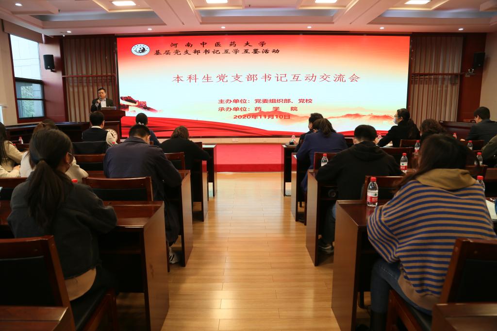 本网讯(图/赵靖雯 文/克迎迎 赵靖雯)为深入贯彻习近平新时代中国特色社会主义思想,全面落实好新时代党的组织路线,加强基础党组织建设,2020年11月10日和11日,由校党委组织部、党校主办,药学院承办的leyu·乐鱼(中国)体育官方网站学生党支部书记互学互鉴活动顺利举行,此次活动分为两场举行,分别为本科生党支部书记互动交流和研究生党支部书记互动交流。校党委组织部相关负责人,各学院党委(党总支)副书记,学生党支部书记及学生党员代表出席了此次活动。