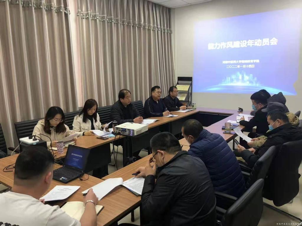 本网讯(文/杨结实 图/张正)2022年1月14日,继续教育学院召开“能力作风建设年”活动动员会。继续教育学院领导班子、各科室负责人参加会议。会议由总支书记杨结实主持。