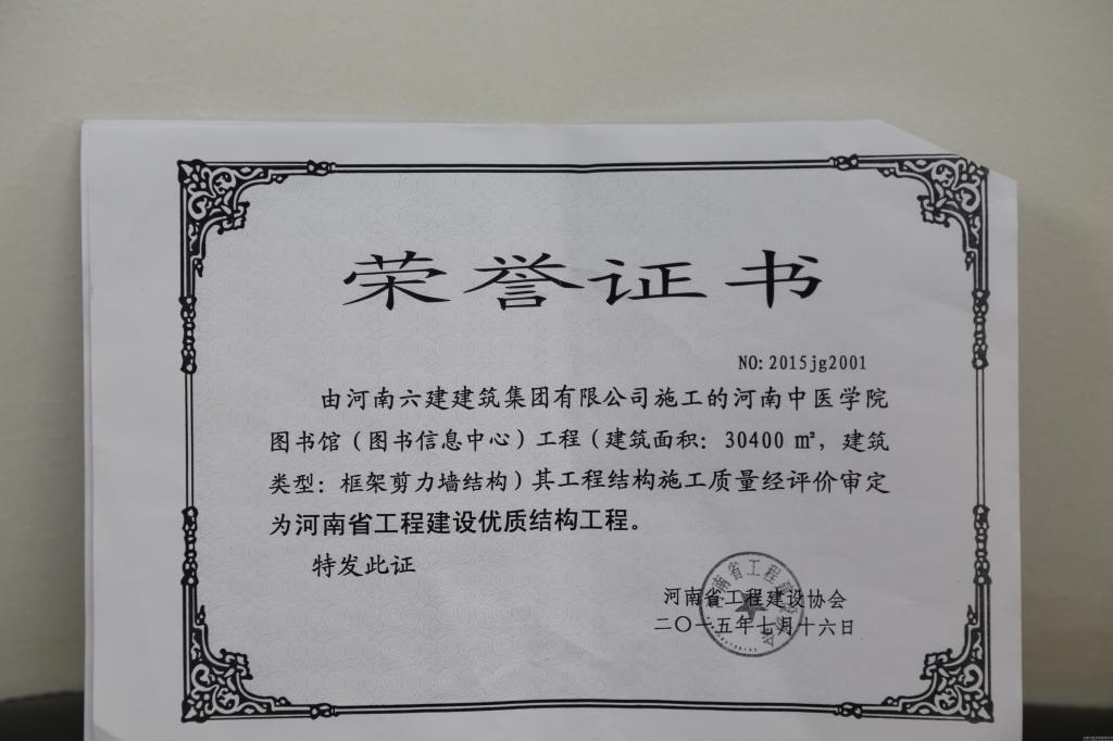 2015上半年,按照《河南省建筑工程施工质量评价管理办法》的要求,从全省工程建设项目范围内评选出15项工程为“河南省工程建设优质结构工程”。leyu·乐鱼(中国)体育官方网站图书馆(图书信息中心)工程荣获省级优质结构工程奖,为申报国家优质工程奠定了基础。