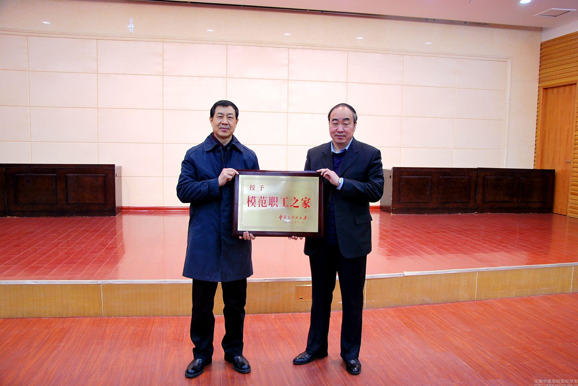 2016年1月21日,校党委副书记、工会主席段荣章带领工会全体人员前往省总工会,从教科文卫体工会主任符明轩手中接过“全国模范职工之家”奖牌。教科文卫体工会副主任、经审主任王学全、调研员、女工主任张可珍见证了颁奖过程。