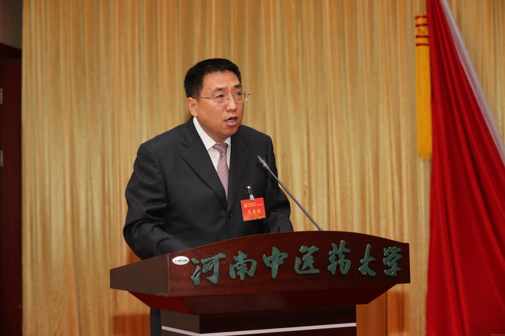 校长许二平同志致开幕词。他代表大会主席团和全体代表,向莅临大会的各位领导、来宾表示欢迎和感谢,说明了会议召开的深刻背景,表示此次党代会的召开,必将对推进全面从严治党向纵深发展,推动学校各项工作和中医药事业发展产生重要而深远的影响。他如数家珍地细数了原河南中医学院第三次党代会以来的八年学校取得的一系列成绩,指出了确定今后五年乃至较长一个时期学校建设发展的指导思想、办学定位、奋斗目标和工作任务的重大作用。许二平校长还简要介绍了大会议程,并再次强调会议召开的重要意义,希望与会代表能够以高度的政治责任感和历史使命感,认真履行代表职责,集思广益,建言献策,圆满完成大会预定的各项任务。