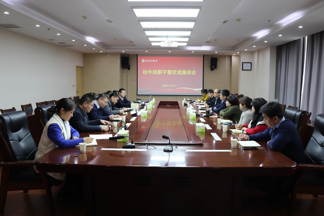 本网讯(文/孟复 图/秦东仁)2022年1月21日上午,学校首批校外挂职干部交流座谈会在综合实验楼BS605会议室召开。首批赴校外挂职干部、挂职干部所任职部门对应学校部门负责人、党委组织部相关人员参加,校长许二平出席座谈会并讲话。校党委副书记李小芳主持会议。