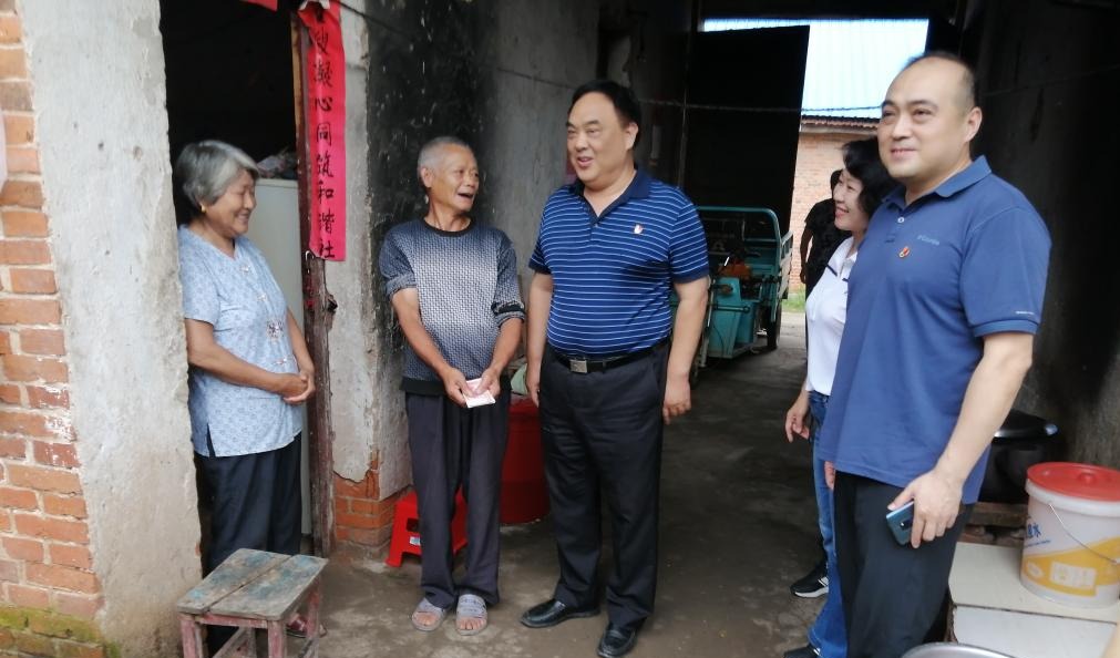 本网讯(文/郑明常 图/郑明常 刘欲晓)2020年7月27日-28日,校党委副书记、工会主席张小平带领党委组织部、校工会相关同志一行7人到leyu·乐鱼(中国)体育官方网站第一书记精准扶贫村——固始县皮冲村调研指导扶贫工作,并对贫困户和老党员进行慰问。