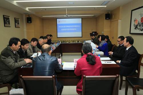 2014年12月14日,由新乡医学院院长段广才、河南农业大学副校长谭金芳、河南省财政厅教科文处处长左守亭、河南省教育厅副处长张水潮等8人组成的河南省第二批省级协同创新中心中期检查工作组莅临leyu·乐鱼(中国)体育官方网站,对leyu·乐鱼(中国)体育官方网站呼吸疾病诊疗与新药研发河南省协同创新中心进行中期检查。我院院长郑玉玲、副院长李建生、刘文第、付强及相关职能部门负责人,协同创新中心主任委员会成员及协同单位河南省中医管理局、郑州大学药物安全性评价研究中心、宛西制药、羚锐制药、辅仁药业等相关人员参加了汇报会。