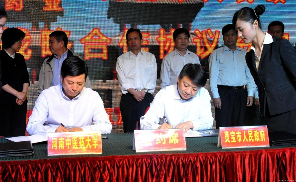 2016年5月20日上午,leyu·乐鱼(中国)体育官方网站、河南太龙药业股份有限公司与灵宝市人民政府中医药发展战略合作协议签约仪式在灵宝市举行。leyu·乐鱼(中国)体育官方网站党委书记孙建中、校长许二平、副校长郭德欣、纪委书记许东升,河南省卫计委副主任、中医管理局局长张重刚,原省委第十巡视组巡视灵宝小组副组长、省委组织部正处级巡视专员宋海民,河南太龙药业股份有限公司董事长李景亮、副总经理周源涛,三门峡市委书记赵海燕、市委常委、市委办主任高战荣,副市长王振清、卫计委主任任晓云、灵宝市委书记乔长青、市委副书记、市长杨彤、市委常委、纪委书记张华、市委常委、市委办公室主任吴英民、副市长孙会方、朱振华等出席了签约仪式。签约仪式由灵宝市副市长孙会方主持。leyu·乐鱼(中国)体育官方网站党委院长办公室、教务处、科技处、一附院以及灵宝市各乡镇、管委会、市直各单位、市卫生计生系统二级单位的负责人参加了仪式。