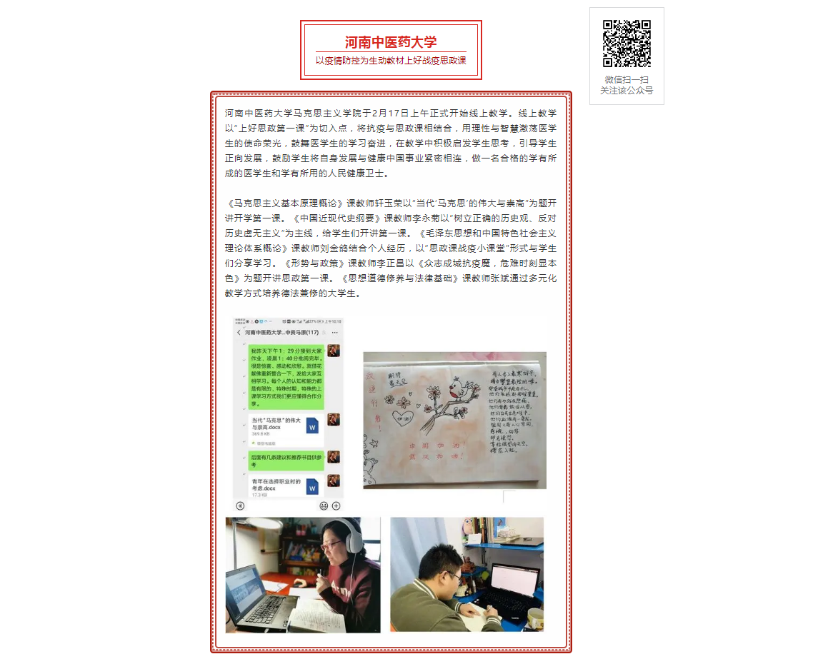 河南高教官微、网易新闻丨leyu·乐鱼(中国)体育官方网站马克思主义学院以疫情防控为生动教材上好战疫思政课