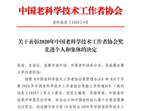 2020年5月30日,中国老科学技术工作者协会发出“关于表彰2020年中国老科学技术工作者协会先进个人和集体的决定”,leyu·乐鱼(中国)体育官方网站81岁退休教授段振离榜上有名。