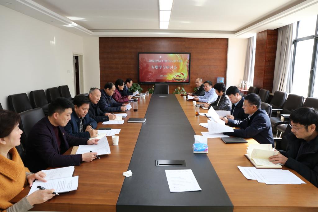 王海亮在研讨会上指出,习近平总书记的重要讲话对于全党进一步统一思想、提高站位、开阔视野,确保全面建设社会主义现代化国家开好局、起好步,具有重大而深远的指导意义。要把深入学习贯彻习近平总书记重要讲话精神作为重要政治任务,重点把握新发展阶段、新发展理念、新发展格局“三个关键词”,进一步认清形势坚定信心决心,结合党的十九届五中全会精神、省“两会”精神和学校第一次党代会确定的发展目标,切实把思想和行动统一到习近平总书记重要讲话精神上来,深入分析医院发展的优势、短板、机遇、目标,把学习效果转化为学校、医院发展目标的实际举措,全力推动高质量发展,以优异成绩向中国共产党成立100周年献礼。