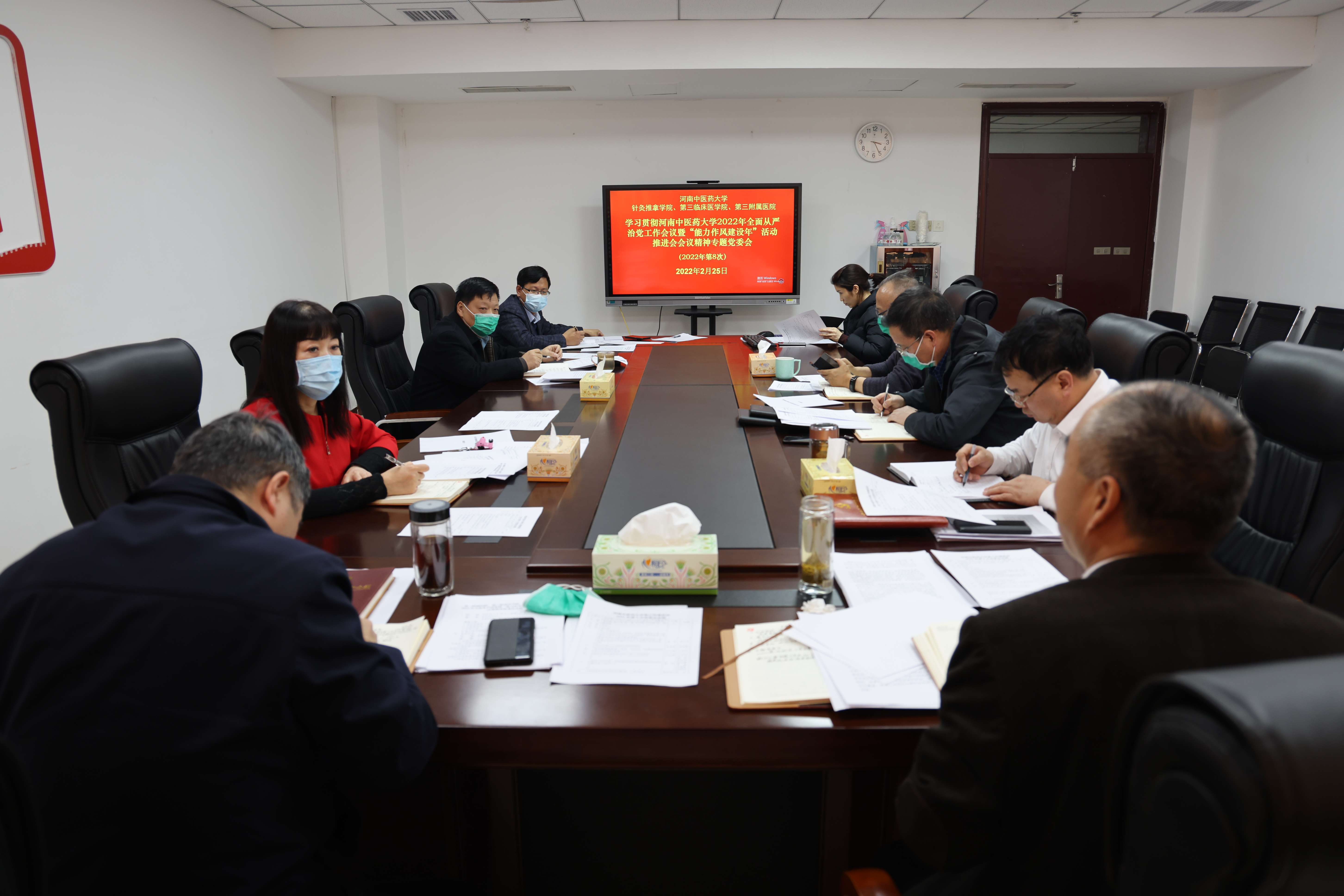 为深入贯彻落实党的十九届六中全会精神和习近平总书记关于全面从严治党及能力作风建设的重要论述,扎实推动“能力作风建设年”活动走深走实,25日下午,医院组织召开全面从严治党暨“能力作风建设年”活动和以案促改工作专题党委会,对学校会议精神进行再学习,对相关工作再部署、再推进,会议由院党委书记周运峰主持。