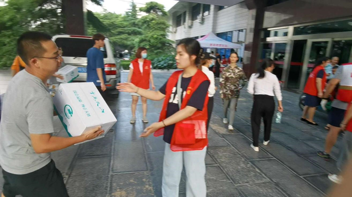护理学院2019级护理学(中外合作办学)本科班李佳馨,当得知家乡郑州因暴雨导致市内受灾严重时,身在外地的李佳馨多方联系回到郑州,来不及休息,便立刻投入当地的志愿服务工作,她认真的对送来物资的登记,整理,运送。她坚定的说大家齐心协力,河南各地灾区一定会以最快速度恢复正常,一定能顺利度过这次难关。