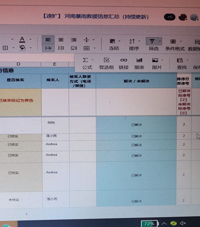 护理学院2020级护理本科二班俞佳,面对突如其来的暴雨灾害,她积极参与河南所需救援人员信息登记,同时负责搜集待救援人员信息、负责、审核工作,虽然不能走上防汛救灾的一线,但是通过线上志愿服务工作,俞佳贡献着自己的一份力量。