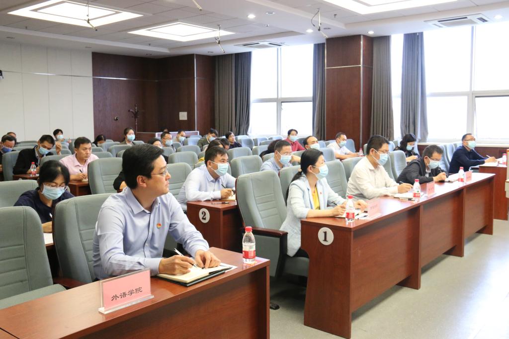 本网讯(文图/秦宇)为深入学习领会习近平总书记“七一”重要讲话精神,扎实推进党史学习教育,2021年9月28日下午,外语学院邀请河南省委党校李涛副教授作专题讲座。学校教务处、尚真书院、外语学院、信息技术学院、管理学院班子成员、支部书记和党员代表聆听讲座。讲座由外语学院党委书记庞亚宾主持。