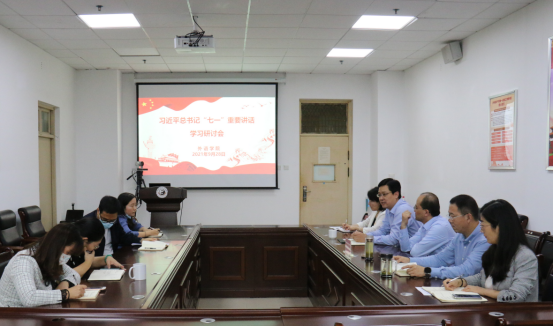 讲座后,外语学院组织召开学习研讨会,李涛副教授及学院行政党支部全体党员及教师代表参加研讨,研讨会由庞亚宾主持。