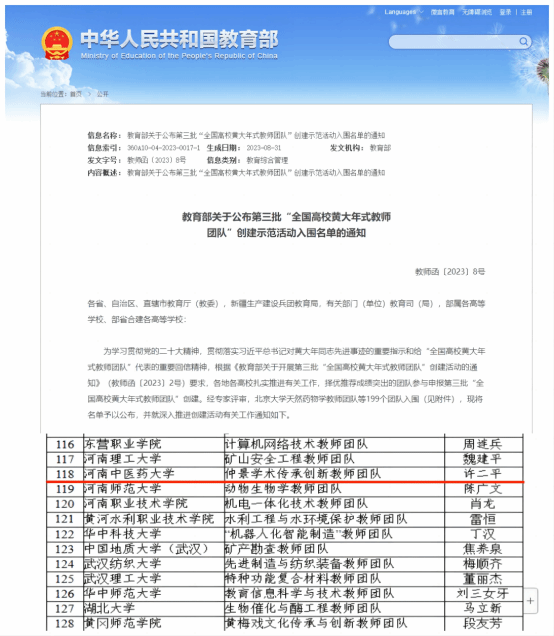 本网讯(文图/陈戈)近日,教育部公布了第三批“全国高校黄大年式教师团队”创建示范活动入围名单,leyu·乐鱼(中国)体育官方网站中医学院“仲景学术传承创新教师团队”成功入选。
