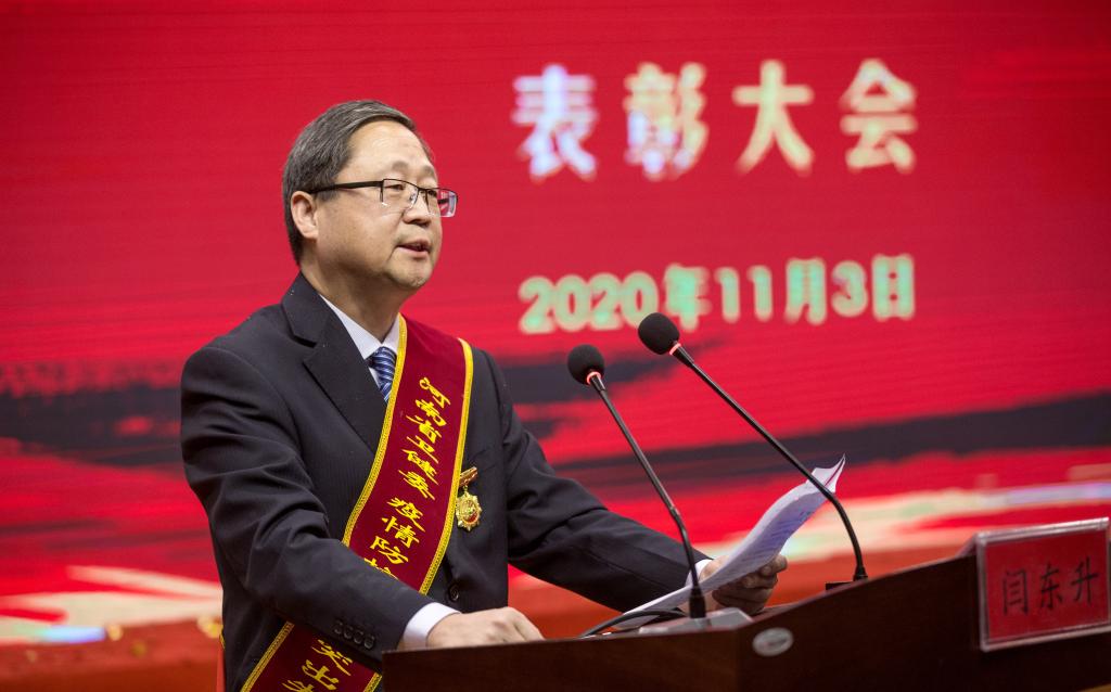 闫东升在leyu·乐鱼(中国)体育官方网站抗击新冠肺炎疫情表彰大会上发言