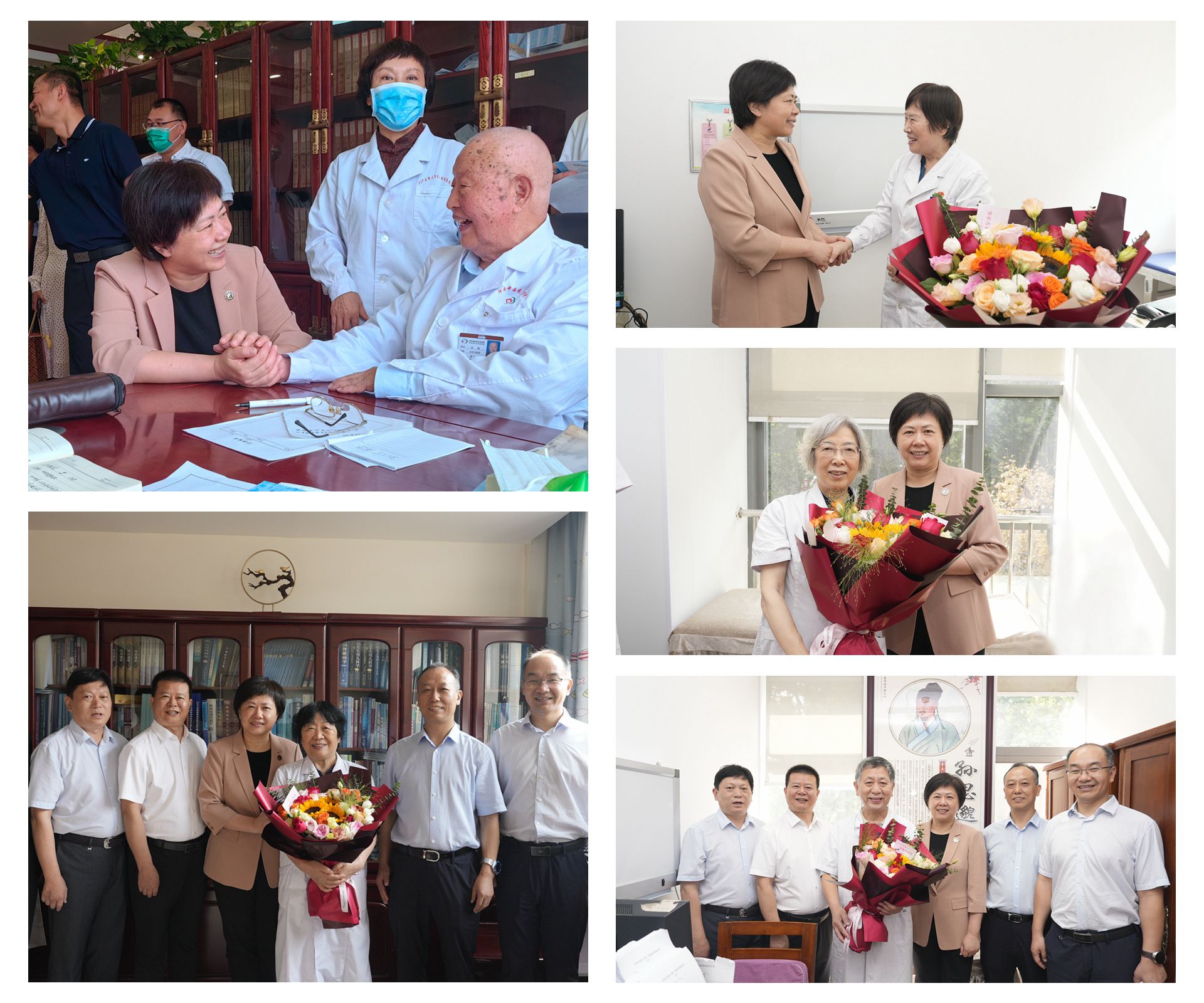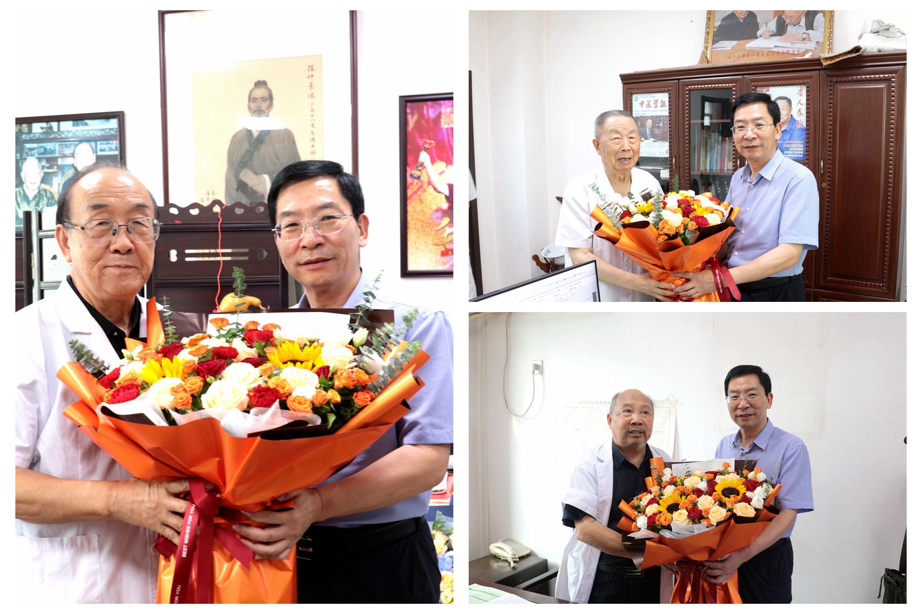 王耀献一行看望慰问了退休教师毛德西教授、王立忠教授和孙彬教授,对他们多年来在医学教育领域的默默奉献和卓越成就给予了高度评价,对他们在人才培养、中医传承工作方面取得的成果和作出的贡献表示诚挚的感谢。王耀献表示,老教授们是教育事业的核心力量,是学生成长道路上的引路人,大家敬业爱岗、无私奉献,为医学事业培养出了一批又一批的杰出人才。希望大家接续传承创新发展中医药事业,继续为学校发展和医院建设贡献力量。