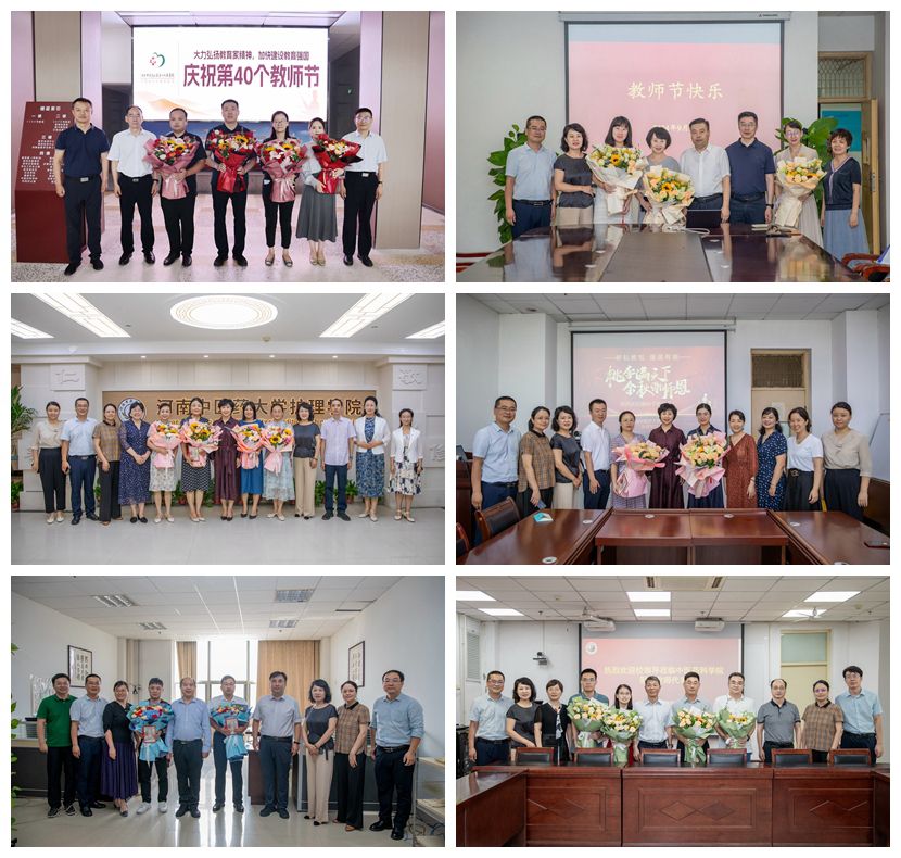 本网讯(文/吴晋一 图/赵庆庆 李攀 潘向昆 郭寅虎)金秋礼赞筑梦人,沃土桃李竞芬芳。为弘扬尊师重教的传统美德,2024年9月9日-10日,第40个教师节来临之际,带着对教育事业的高度重视和广大教育工作者的深深敬意,校党委书记李小芳,校长王耀献,校党委副书记、工会主席张加民,校党委副书记朱建光,校党委委员、副校长田力、苗明三、张振强带领党委教师工作部、人事人才工作部、教师发展中心、工会等有关部门负责人开展教师节慰问活动,看望奋战在教学、科研、临床一线的教师们,为全体教职工送上节日的慰问及最诚挚的祝福。