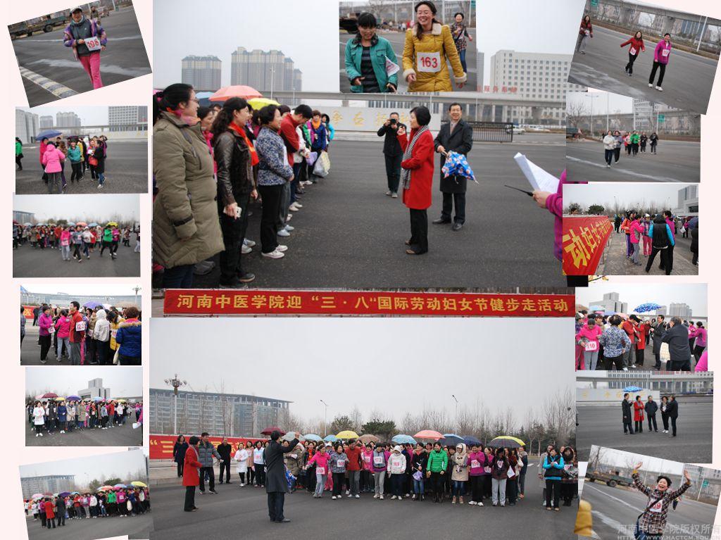 3月5日下午,leyu·乐鱼(中国)体育官方网站近300名女教职工参加了在仲景文化广场起步、环校园外围一周的“庆‘三八’ 健步走”活动。院长郑玉玲教授,校党委副书记、工会主席段荣章教授,校党委副书记、纪委书记郭海波教授与来自leyu·乐鱼(中国)体育官方网站各分工会不同岗位的女教职工一起行走,完成了3600多米的行进路程。此次活动校武装保卫处积极参与协助维持现场秩序、三附院派专人负责医疗保障工作。