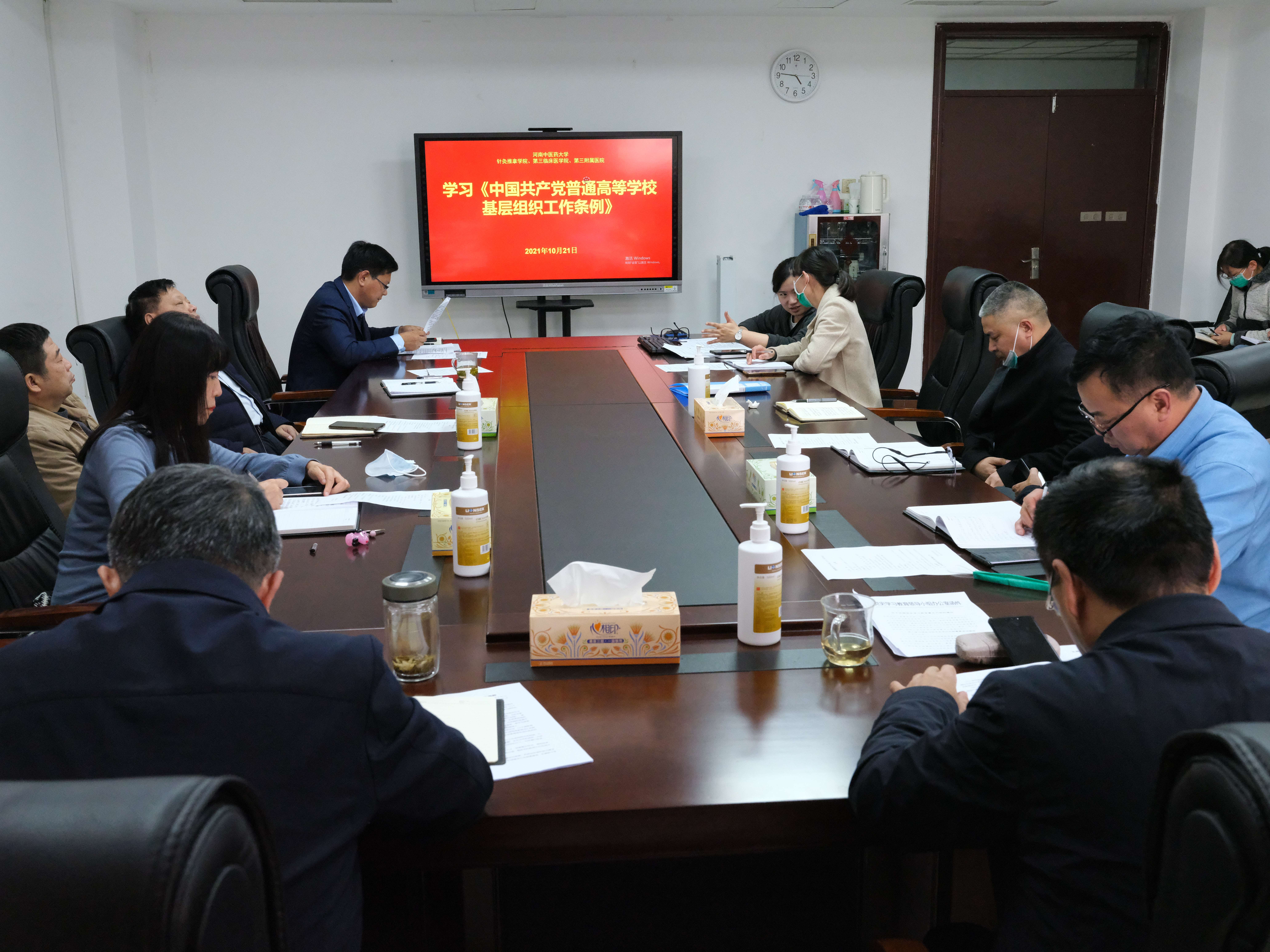 本网讯(文/孙璐 图/田辉 )2021年10月21日,三附院党委理论学习中心组召开扩大会议,专题学习习近平总书记系列重要讲话精神。院党委理论学习中心组成员参加会议,各党总支、直属党支部书记、相关部门负责人列席。会议由院党委书记周运峰主持。