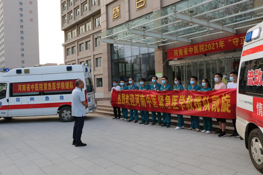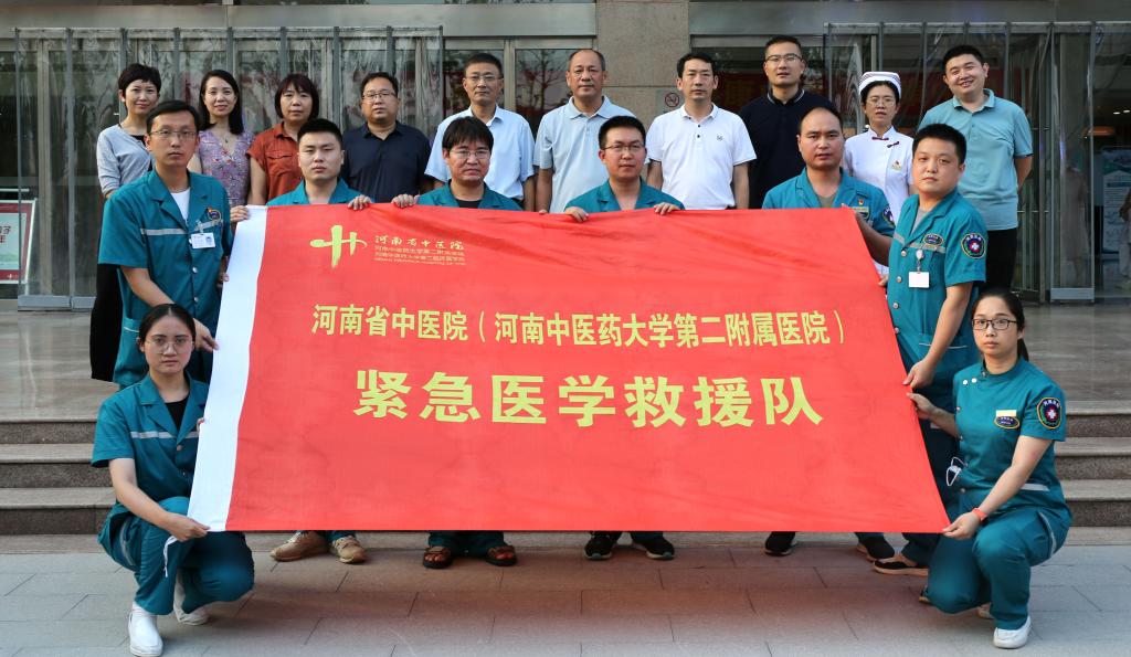 救援队在前方奋战,院领导全院职工时刻牵挂着他们,多次电话询问救援队的工作生活情况,嘱咐队员们注意身体。7月30日,院长崔应麟,副院长张勤生、赵旭,带着医疗物资及生活物资,代表医院赴新乡慰问救援队。
