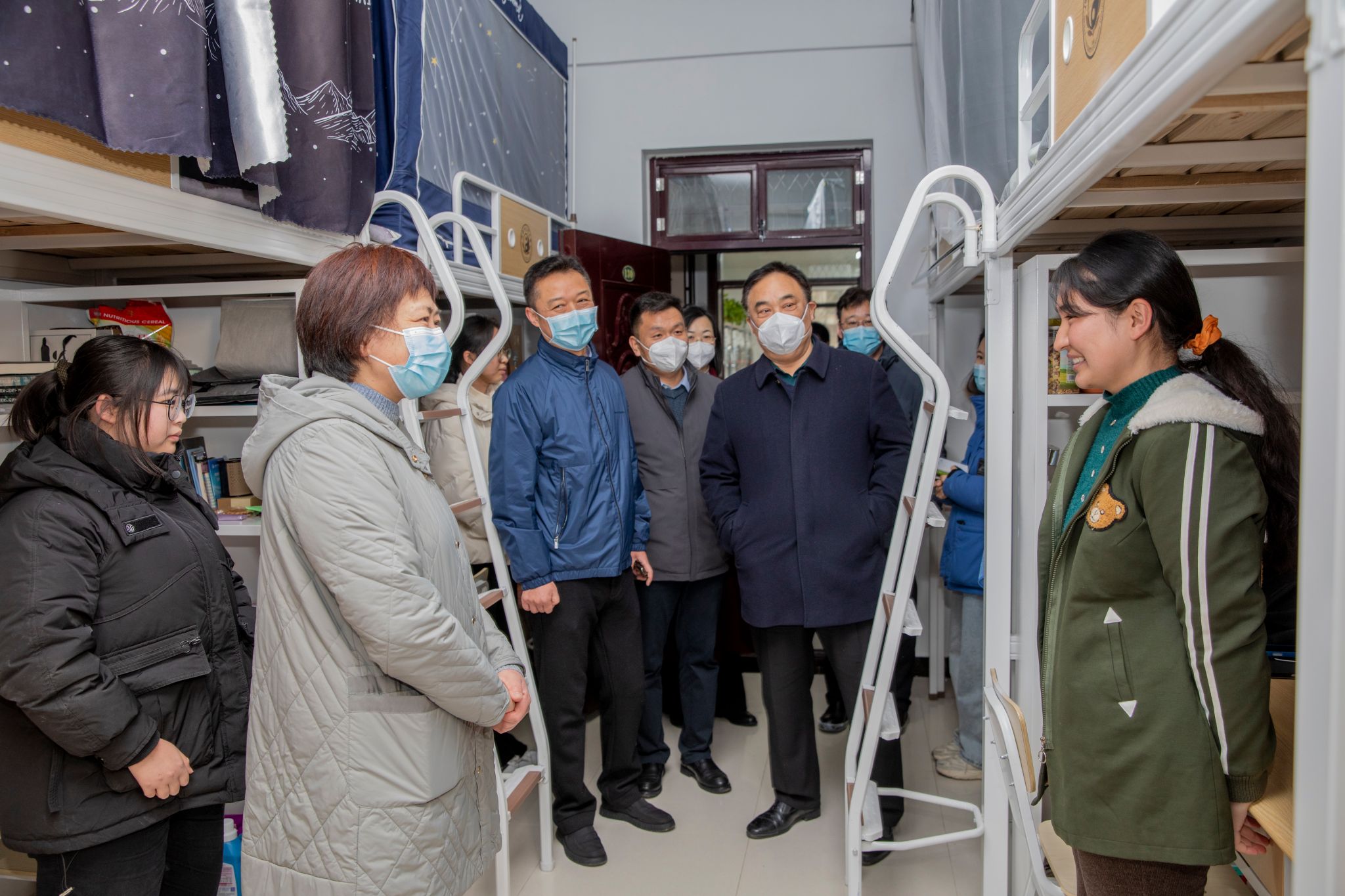 校领导分组分别来到第四附属医院、心理健康教育与咨询中心、各校区学校餐厅、超市、学生宿舍等地,实地察看、询问防疫药品和物资准备情况、学生心理健康教育工作开展情况、饭菜质量与饮食安全、各类生活用品的供应情况、学生住宿情况及学校大门管理和安保人员值守情况等。李小芳强调,要着眼“乙类乙管”新形势下的疫情防控要求,配齐配足防控药品和物资,做好校园疫情监测,及时提供自愿隔离和治疗救治服务。要时刻关注学生的心理健康问题,扎实做好学生食品安全、卫生安全、消防安全等方面的工作,用心用情用力做好服务保障,确保广大师生生命安全和身体健康。