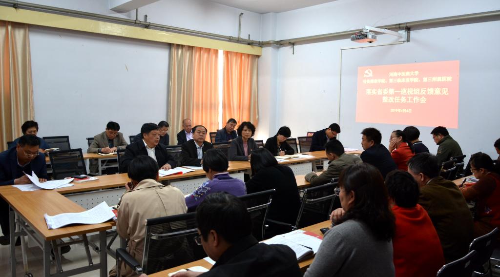 本网讯(文/胡兴旺 图/田辉)为了更好的落实巡视整改工作要求,提高思想认识,提升政治站位,2019年4月4日下午,三附院在综合楼1109会议室召开省委第一巡视组巡视反馈意见整改工作部署会。医院党委书记周运峰、党委副书记陶洁、纪委书记刘会勋、各党(总)支部书记及责任科室负责人参加会议。会议由陶洁主持。