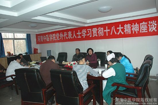 12月4日下午,leyu·乐鱼(中国)体育官方网站党外代表人士学习贯彻十八大精神座谈会在老校区会议室召开,校党委副书记张丽霞出席会议,leyu·乐鱼(中国)体育官方网站各民主党派负责人、无党派代表人士、各级政协委员、文史馆馆员参加会议,会议由宣传统战部部长刘保庆主持。