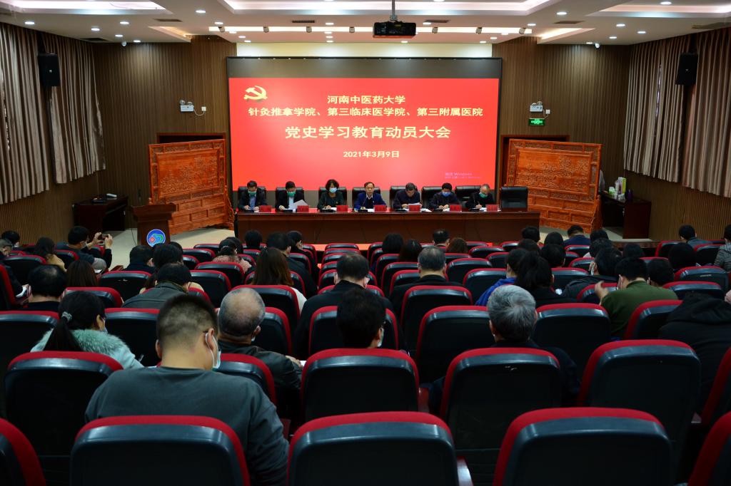 本网讯(文/图 潘向昆)2021年3月9日下午,三附院召开党史学习教育动员会,传达学习习近平总书记在党史学习教育动员大会上的重要讲话精神,落实省委、学校党委关于党史学习教育工作部署要求,安排部署三附院党史学习教育。院领导班子出席会议,各党(总)支书记和全体中层干部参加会议。院长张大伟主持会议。