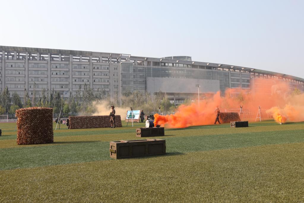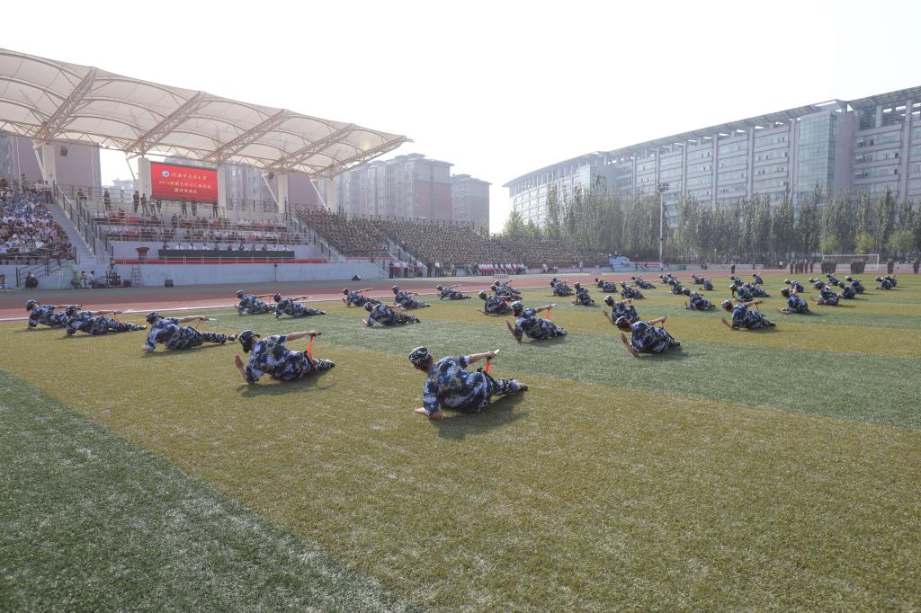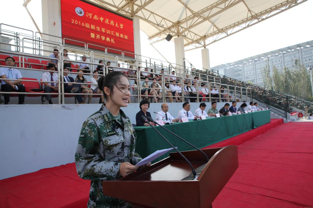 庄严肃穆的国歌声后,军训汇报表演开始。伴随着校广播站的解说和军乐,13个分列式队伍依次通过主席台,整齐的步伐,嘹亮的口号,展现出学校更名为leyu·乐鱼(中国)体育官方网站后首届中医学子的飒爽英姿。军训部队军官一声令下,6个表演方阵逐一开始军训汇报表演。无论是校仪仗队的队形变换和花枪表演,或是由新老生带来的军体拳、匕首操、刺杀操,还是最后的班战术对抗演练,都让现场发出了一阵阵的惊叹和喝彩,紧张的现场“作战”激荡着中医学子的保家卫国的炽热之心,让他们感受到了和平的来之不易,同时更加珍惜当下美好的大学时光,发奋学习。