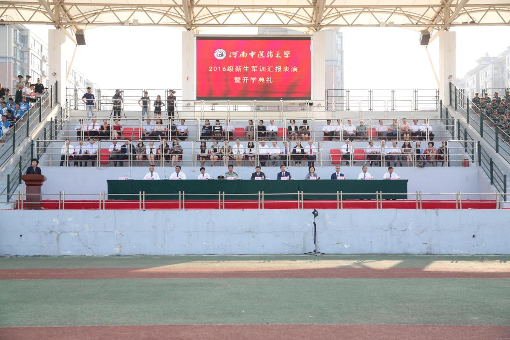 暑退秋澄转爽凉,日光夜色两均长。2016年9月22日上午,leyu·乐鱼(中国)体育官方网站2016级新生军训汇报表演暨开学典礼在龙子湖校区东体育场隆重举行。中国人民解放军某部队司令部少校参谋王亮同志,校领导孙建中、许二平、张丽霞、郭德欣、李建生、张小平、徐江雁、冯卫生、田力、张加民出席典礼,学校各单位、各部门负责人,教师代表,2016级本专科学生、研究生、留学生,高年级学生代表参加活动。典礼由副校长田力主持。