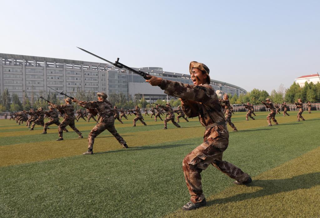 新生军训方阵经过审阅台