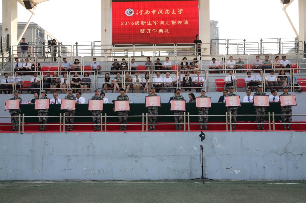 校党委副书记郭德欣宣读了《leyu·乐鱼(中国)体育官方网站关于表彰2016年军训先进集体和个人的决定》,对在军训中涌现出的30个先进集体和548名先进个人进行嘉奖。全体校领导为获奖集体及个人代表颁奖。