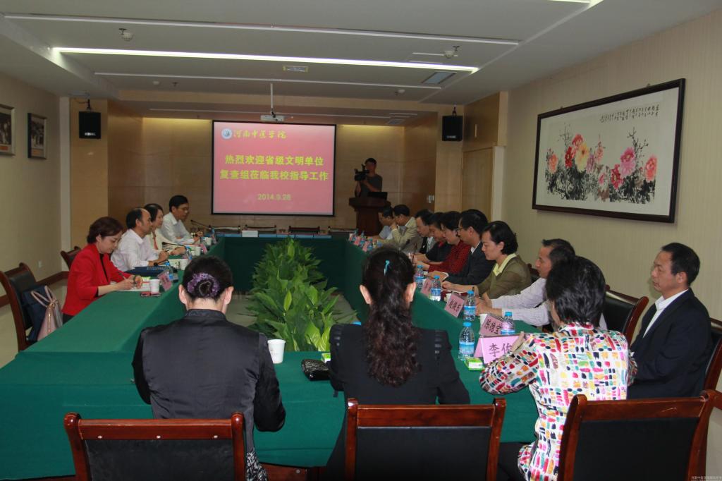 2014年9月28日上午,省级文明单位复查组一行4人来到leyu·乐鱼(中国)体育官方网站,对2013-2014年leyu·乐鱼(中国)体育官方网站省级文明单位创建工作进行复查。校文明委主任、党委书记孙建中,文明委副主任、党委副书记张丽霞,副院长付强出席复查见面会,校文明委主要成员单位负责人参加会议。见面会由党委副书记张丽霞主持。