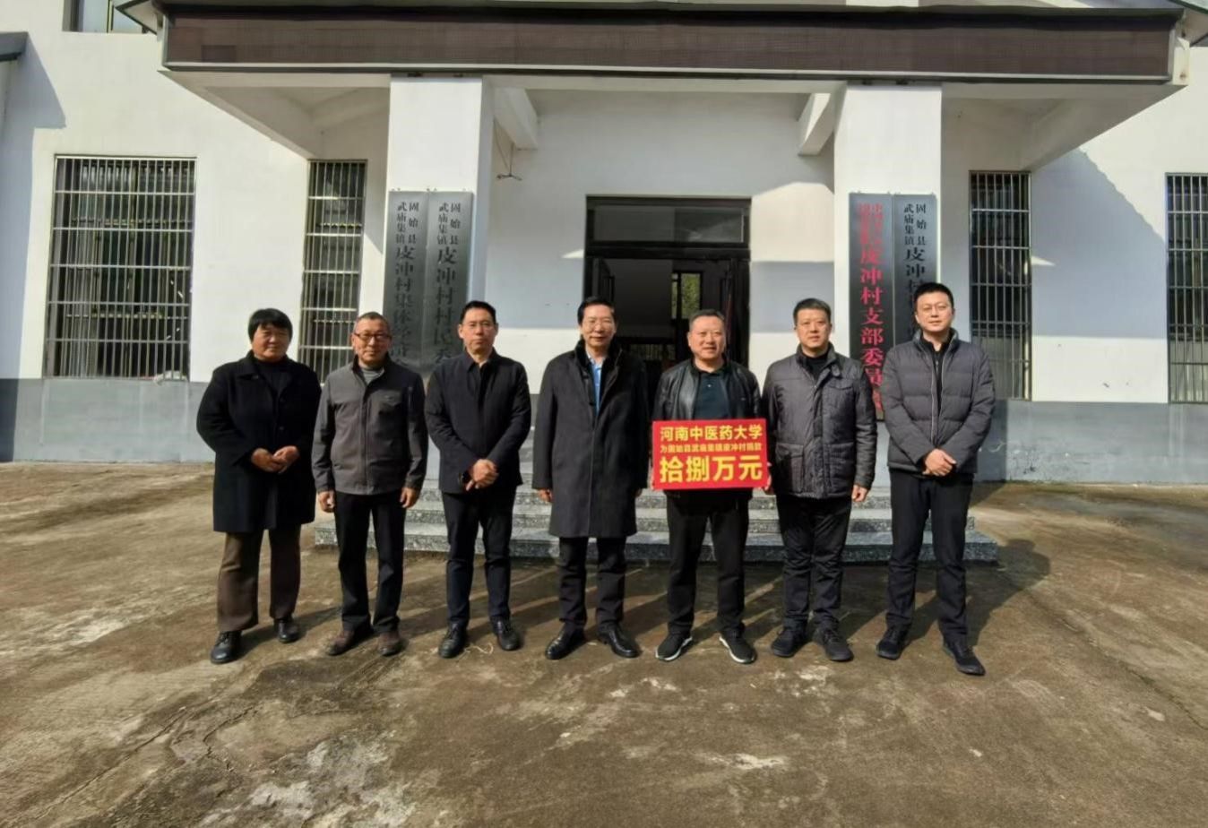 在皮冲村村部,校地双方共同举行了乡村振兴建设资金捐赠仪式。王耀献校长代表学校向皮冲村捐赠人民币18万元,专项用于支持皮冲村夏茶生产车间项目的改造升级。王耀献指出,经过数年的不懈努力与持续帮扶,皮冲村荣获省委组织部授予2023年度“河南省五星党支部”称号,且皮冲村精准帮扶项目荣获2024年河南省高等学校精准帮扶典型项目一等奖,这些成绩的取得绝非偶然,而是大家勠力同心、不懈努力干出来的。学校将深刻领会把握习近平总书记关于“三农”工作的重要指示精神,充分发挥自身在中医药学科领域的独特优势,积极融入到皮冲村的乡村振兴实践之中。