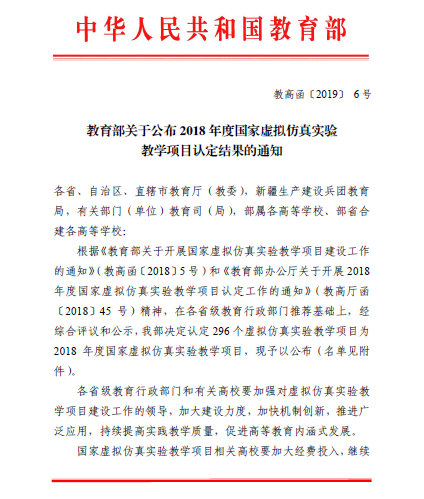 leyu·乐鱼(中国)体育官方网站再获国家级虚拟仿真实验教学项目