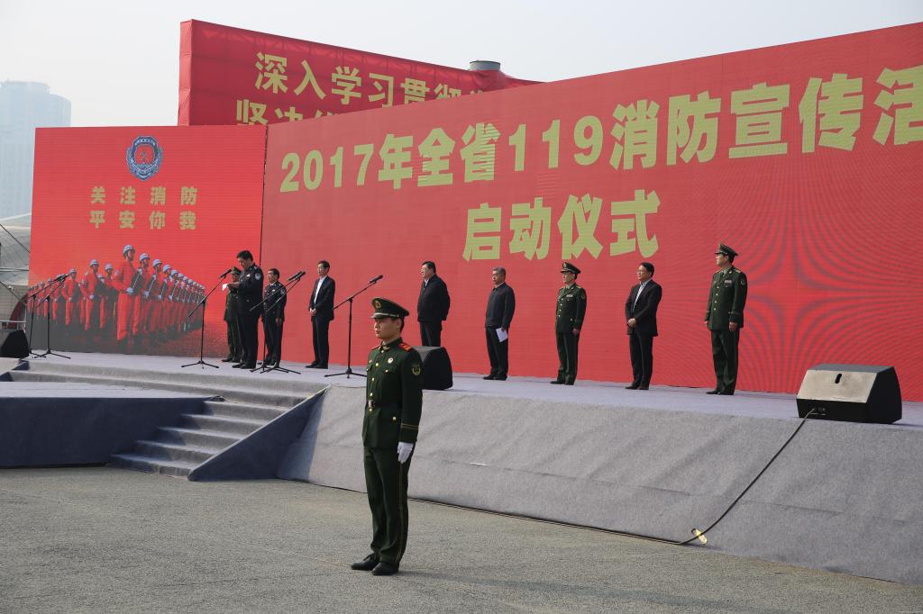 今年“119”消防宣传活动的主题是“关注消防,平安你我”。全省组织开展了“全民消防我代言”大型公益行动,邀请了4000余名知名人士、各行业优秀代表担任“消防公益代言人”,为消防安全代言。启动仪式上,奥运冠军孙甜甜代表消防公益代言人宣读了“关注消防安全”倡议书。启动仪式后,与会人员现场观摩了车辆装备和危险化学品处置演练,以及各类展示体验活动。H5消防装备体验、VR逃生模拟体验、烟雾逃生体验、高层火灾逃生演示、居民电气火灾安全防范等8个消防演示体验项目展台,吸引了上万名群众体验互动,提高了大家的自我防护和安全逃生意识。