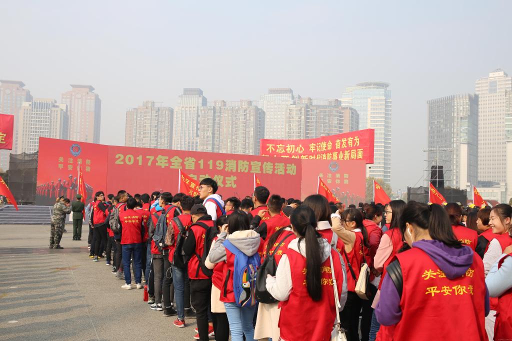 2017年11月9日,在第27个全国消防日当天,全省“119”消防宣传活动启动仪式在郑州市郑东新区如意湖文化广场举行,leyu·乐鱼(中国)体育官方网站作为全省唯一一所高校参加了此次启动仪式。来自各院系的150名师生代表实地感受了消防抢险现场的紧张感,强化了防灾意识,增强了处理危机的能力。