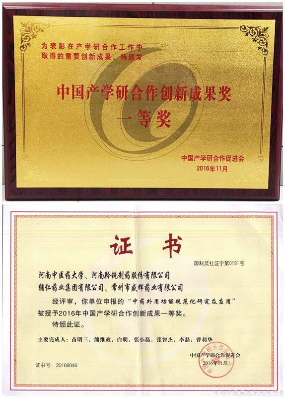 获中国产学研合作创新成果奖一等奖
