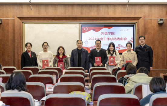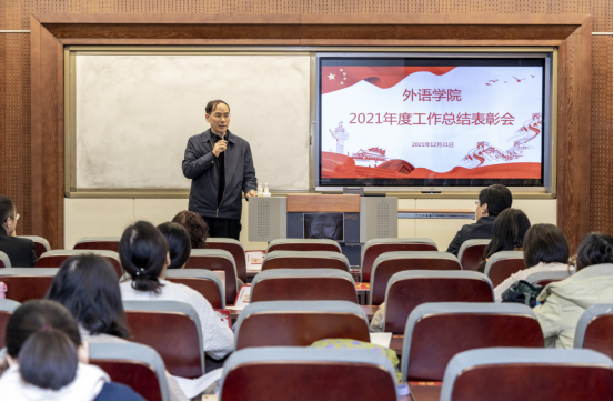 会上,外语学院党委副书记苏峰,副院长朱文晓、张冰分别宣读了外语学院2021年度党建工作、科研研究生工作、教育教学工作等获奖情况及表彰名单。