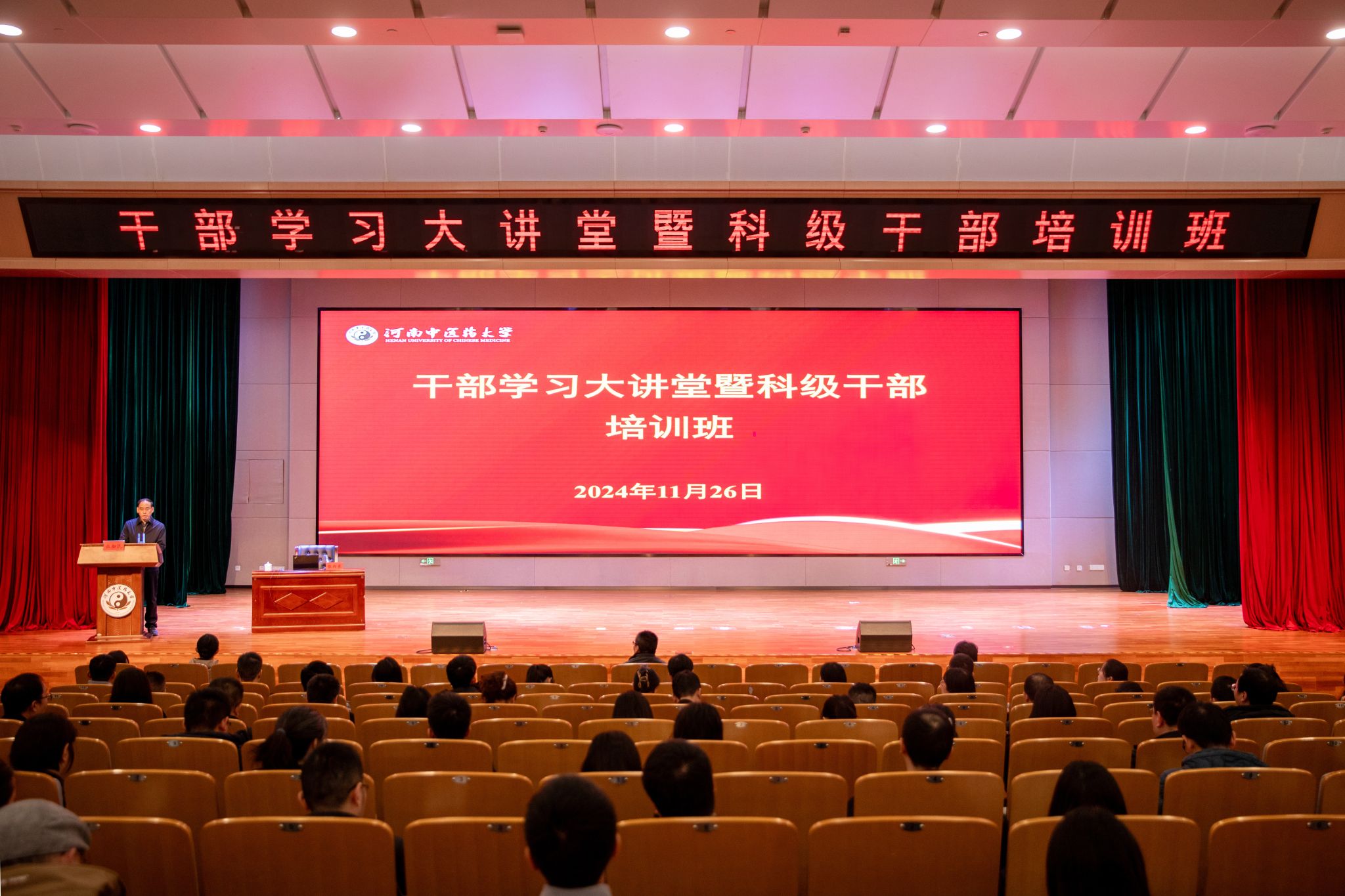 本网讯(文/张艳丽 图/郭寅虎)为深入学习贯彻党的二十届三中全会精神,提升新任科级干部的党性修养、政治素质和履职能力,2024年11月26日,学校“干部学习大讲堂”暨科级干部培训班在俊学楼B101报告厅开班。校党委副书记、工会主席张加民出席会议并作动员讲话。特邀请学习贯彻党的二十届三中全会精神省委教育工委宣讲团成员——河南大学副校长、博士生导师张向东教授,以及leyu·乐鱼(中国)体育官方网站发展规划与学科建设处处长孙可兴教授作专题报告,全体科级干部参加培训。